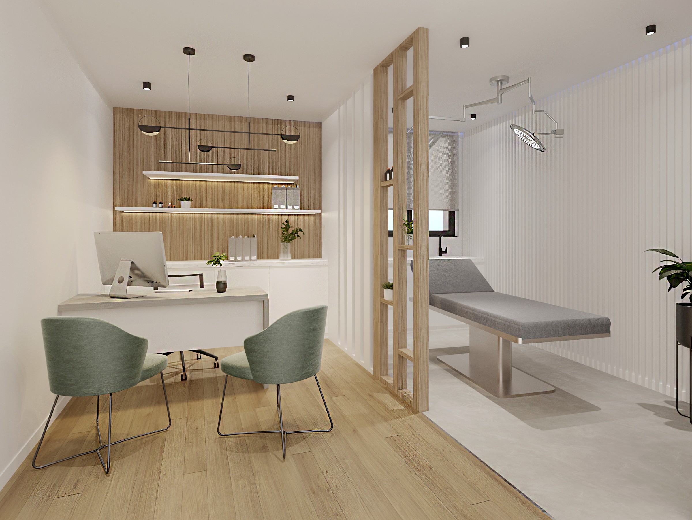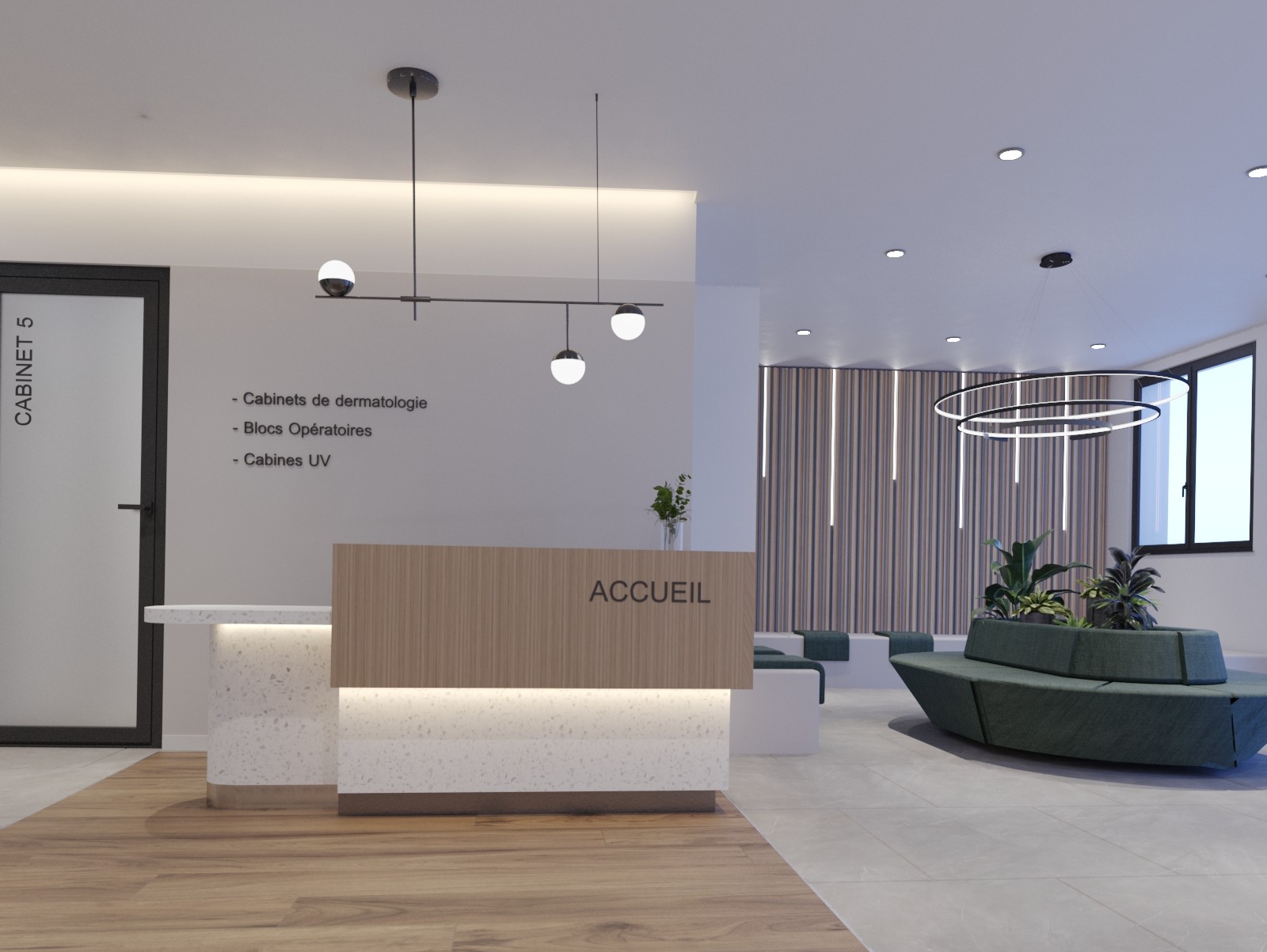 Situé à Saint-Maur-des-Fossés , ce cabinet médical pluri disciplinaire spécialisé en Dermatologie, a été conçu pour offrir un cadre serein et apaisant aux patients comme aux professionnels de santé. Le design allie modernité et nature, grâce à une palette de couleurs douces et l’utilisation de matériaux chaleureux comme le bois et le tissu.