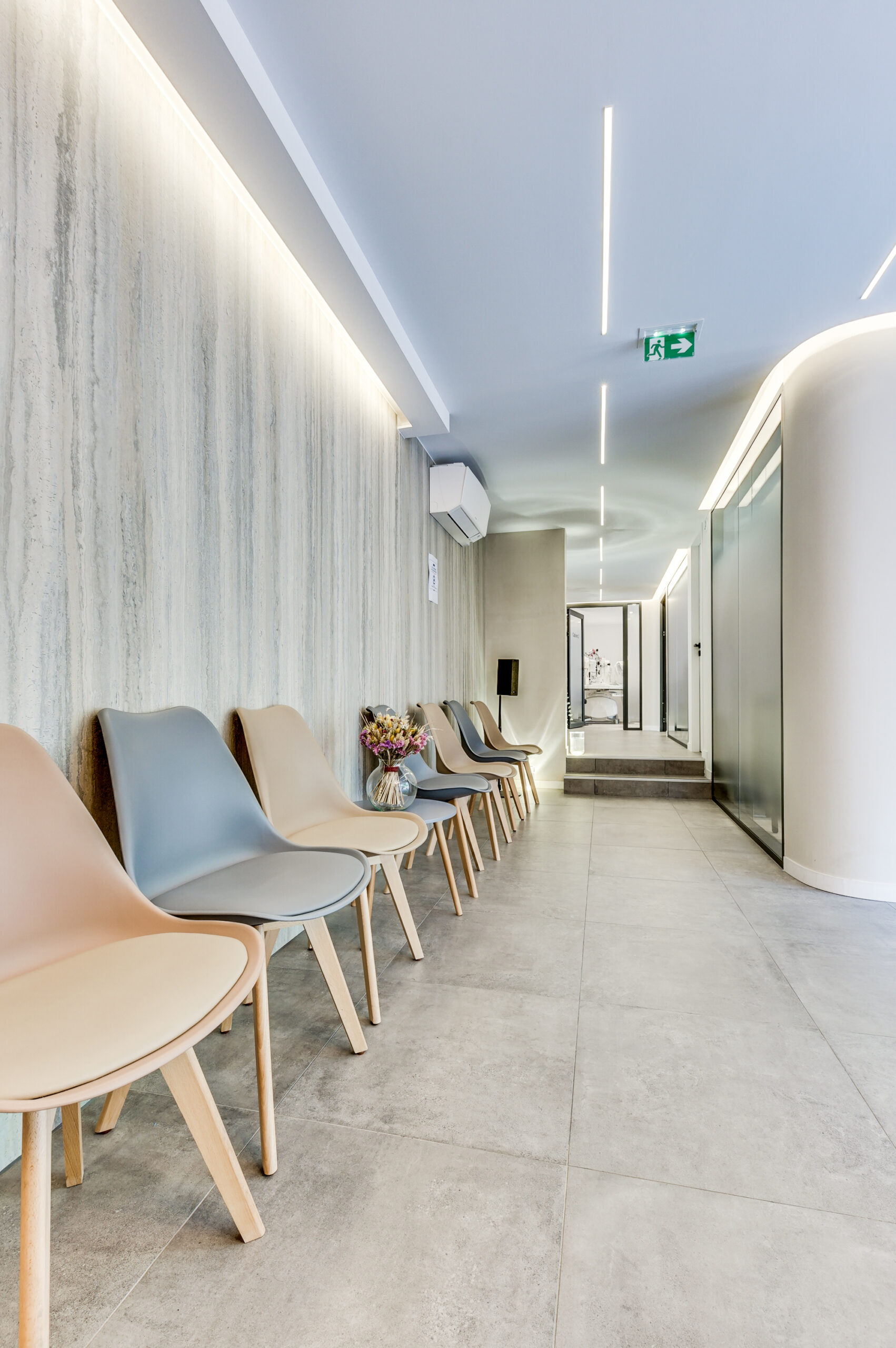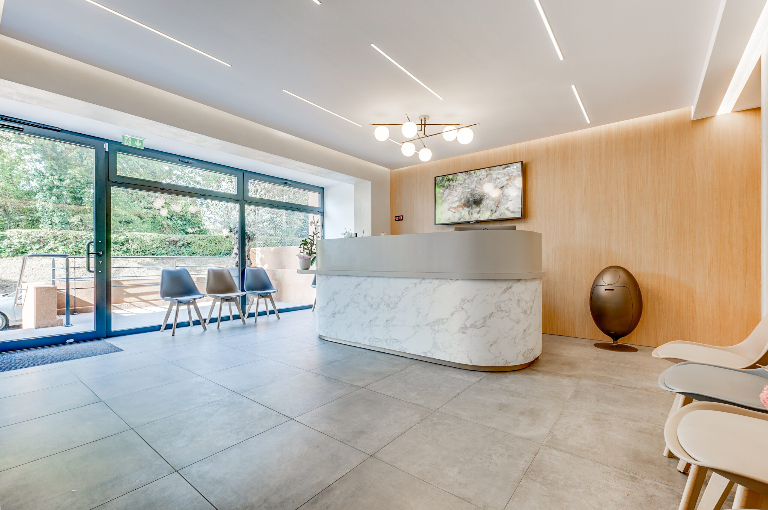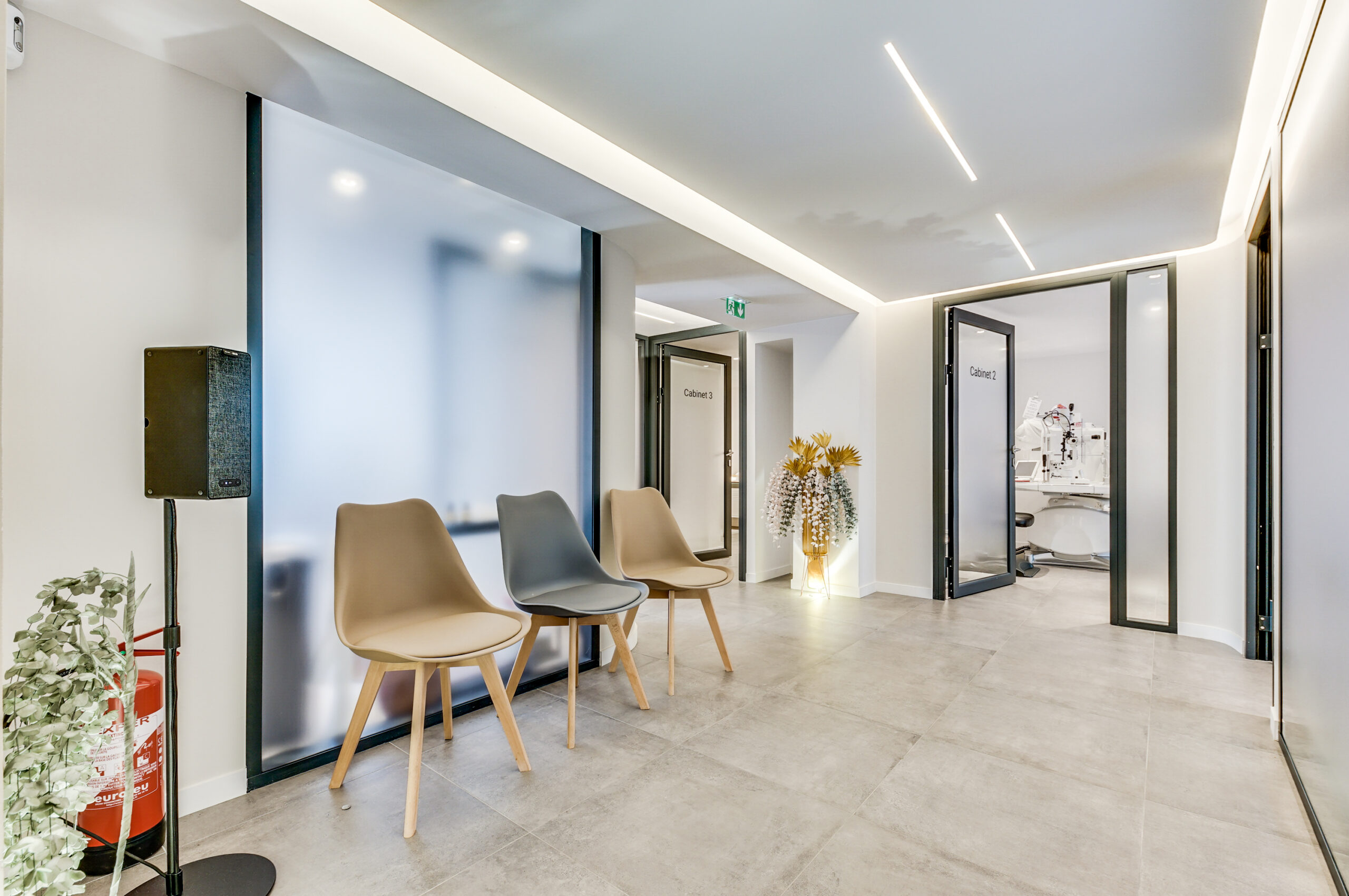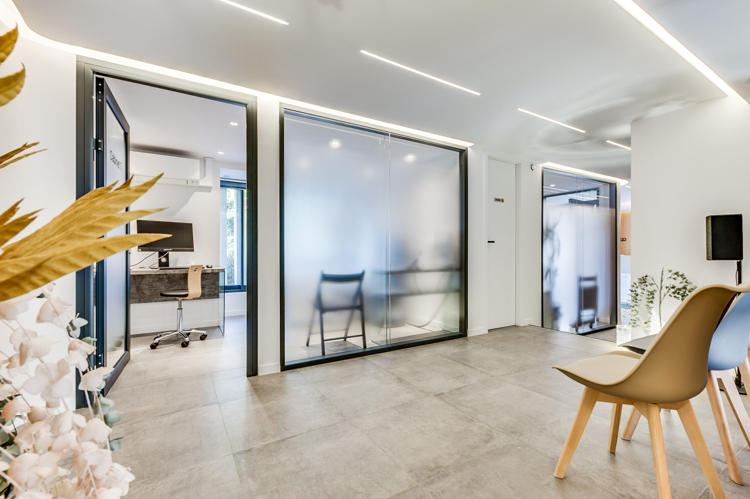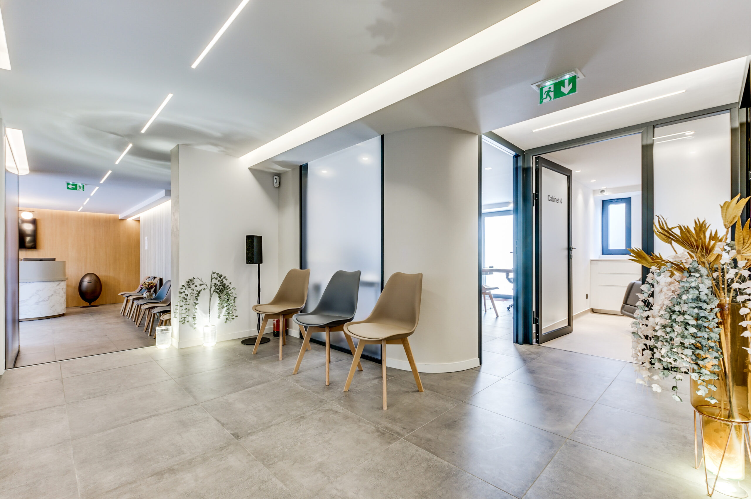 Cabinets de consultation : des espaces ouverts et lumineux, avec des matériaux naturels et une décoration minimaliste. Toute l’ergonomie a été pensée, et l’agencement favorise une sensation de sérénité et de confort.
