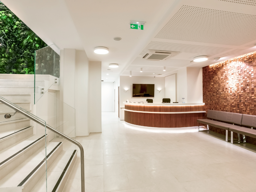 L’un des enjeux majeurs de ce projet fut de transformer un lieu sans aucune ouverture sur l’extérieur en un espace médical agréable, lumineux et apaisant. Nous avons travaillé minutieusement :