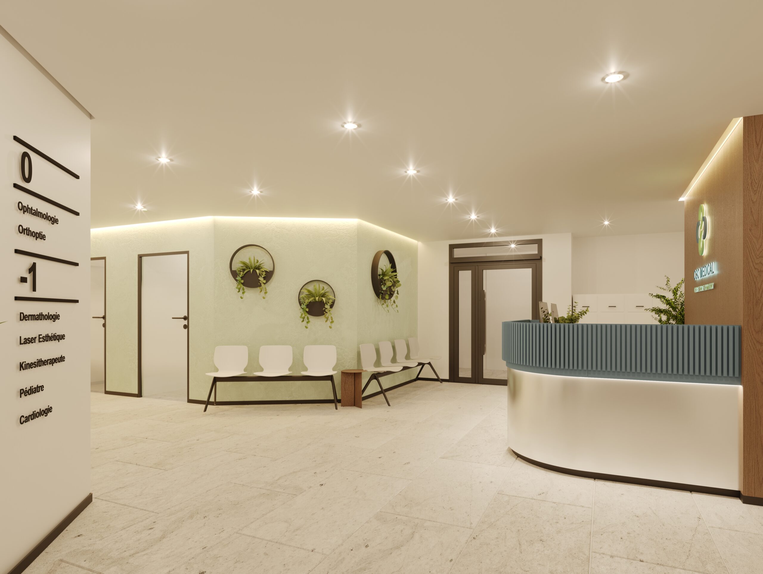 Projet de Maison de Santé répartie sur deux niveaux et une surface totale de plus 569m2 avec : médecine générale, gynécologie, ophtalmologie, orthoptiste, cardiologie.Transformation complète 238 m2 au RDC et 331 m2 au sous-sol.